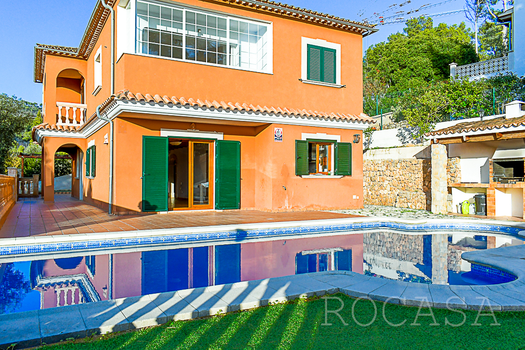 Muy espaciosa villa familiar, a escasos minutos paseando de la playa y de la exclusiva marina de Puerto Portals, sus comercios y su ambiente. Cuenta con 5 habitaciones, 3 baños, gran salón-comedor con chimenea, cocina equipada, piscina privada, amplias terrazas, grandes espacios para reuniones familiares y entre amigos, zona de barbacoa, spa, gimnasio, zona de juegos, comedor independiente en el sótano equipado con cocina y chimenea.